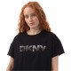 Womens DKNY Sequin Logo T- Shirt in black grey.
