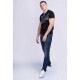 Men´s T-shirt regular fit. - Model description: T-shirt with rounded V. - neck and large logo on the front. The print is cut through the neck hole and the sleeve/side seams. There is a small label on the left side. - Quality: 100% combed cotton. - Fabric: jersey. Quality 100% combed Cotton.
