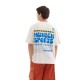 This short-sleeved t-shirt stands out for its contemporary oversize fit and a bold graphic design on the back featuring retro blue typography that captures the essence of our urban culture. Its round neck and dropped shoulder construction provide a relaxed and modern silhouette perfect for pairing with track pants for a skate outfit or with dark denim for a casual night out, ensuring superior freshness and softness with every wear. Specifications: - Main material: 100% Organic cotton.