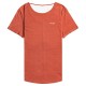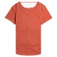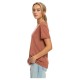 T-Shirt for Women. Features: Fabric: Drapey polyester viscose blend fabric. Fit: Slightly loose fit. Slightly curved bottom fit. Scooped neckline on the back with ties. Loose roll-up on sleeves. Screen print on chest. Composition: 65% Polyester, 35% Viscose.