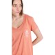 Short Sleeve T-Shirt for Women. Features include: Fabric:Drapey fabric Polyester Viscose (160 g/m2), Water-based glue used, Fit:Classic, comfortable regular fit, Neck:Deep v collar with rib, Pocket on chest, Screen print on front and back.