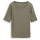 Basic T-shirt in plain colours with a round neckline. Made from soft cotton fabric with a slight stretch for a comfortable fit. Features: - Regular Fit. - straight cut. - Chest width for size M approx. 44 cm. - Back length for size M approx. 62 cm. Composition: Shellfabric: 97% Cotton, 3% Elastane. Washing cares: 30°C coloured wash, Do not dry-clean, Do not tumble dry, Do not bleach, Iron at moderate temperature, Wash with similar colours, Wash and iron inside out, Pull into shape when wet.
