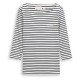 Striped long-sleeved top with boat neck and 3/4 sleeves. With feminine heart-style print on the chest. Made from cotton fabric with stretch for a comfortable fit. Features: - Regular Fit - straight cut. - Chest width for size M approx. 44 cm. - Back length for size M approx. 63 cm. - Organic Cotton. Composition: Shellfabric: 97% Cotton (organic), 3% Elastane. Washing cares: 30°C mild wash, Do not iron the ornaments , Do not dry-clean, Do not bleach, Do not tumble dry, Iron at low temperature, Wash and iron inside out, Wash with similar colours, Pull into shape when wet.