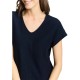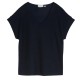T-shirt with V-neck and dividing seam on the front. Made from textured jacquard fabric. Features: - Regular Fit. - straight cut. - Organic Cotton. Composition: 63% Cotton (organic), 24% Modal, 13% Polyester. Washing cares: 30°C mild wash, Do not dry-clean, Do not bleach, Do not tumble dry, Iron at low temperature, Wash and iron inside out, Wash with similar colours, Pull into shape when wet.
