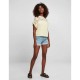 This fabulous women´s shirt is as good as it gets. The cut is oversize, the length short. The upper part of the top radiates with luxurious, elastic lace and offers a noticeable look. Slanted sleeve hems loosen up the design skillfully. The ladies´ top goes super with trousers, shorts, skirts and leggings - making it a real all-rounder.