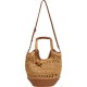 Judith Balm tote straw basket bag with magnetic closure, fabric lining, two handles, adjustable and removable shoulder strap, inner pocket, flower hanging charms with metal stopper, classic logo with same material on the front and patch with printed classic logo on the back. Dimensions:50x14x33. Composition: 80% Paper, 20% Polyurethane.
