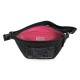 Denim fanny pack with studs and printed label. Adjustable strap and transparent clip. Zipper closure. Dimensions: 33x13 x 7.5 cm. Composition: 45% cotton, 27% viscose, 23% polyester, 4% lyocell, 1% acrylic. Lining: 100% polyester. Care instructions: Wool wash - Do not bleach - Do not tumble dry - Do not iron - Do not dry clean