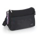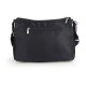 Features: Medium bag with two compartments from the AROA collection, made of black nylon and a keychain with pink tones to add color to the collection. Its material is water-resistant. Made with PVC-free materials. Measurements: 33x24x9 cm. Volume: 5.6 L. Weight: 0.45 kg. Composition: Nylon.