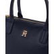 Compact Tommy Hilfiger mini tote bag for women in Space Blue. Crafted from smooth soft-touch fabric with structured handles and subtle logo detail. The perfect small-scale companion for elegant everyday styling.: Composition: 51% Post-Consumer Recycled Polyester, 49% Polyurethane.