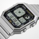 Casio Adults Digital Watch pairs retro-futuristic aesthetics with modern functionality. The sharp angular case and metallic finish create a bold geometric shape, while the LCD display balances digital precision with analogue-inspired clock faces.