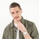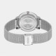 40mm stainless steel case, matte white dial and stainless steel mesh bracelet. Water resistant to 3ATM.