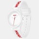 Fun, colourful and easy to wear, the #LIT FOR HIM is a must-have everyday timepiece from HUGO Watches with a modern, fluid silhouette. The lightweight, nylon-infused resin case is fitted with a soft silicone strap, gloss-printed with a large, contrast-colour logo for eye-catching branding. The gender-neutral design is complete with a matte dial with a moulded minute track, and a bezel with embossed hour markers.
