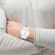 A 42mm TR90 white case, white dial with white silicone strap. Water resistant to 5ATM.