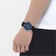 43mm stainless steel case,, navy aluminum bezel, white dial watch on a stainless steel bracelet