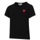 But what truly sets this t-shirt apart is the contrasting small red Peeping Heart emblem on the chest. This iconic symbol, synonymous with Comme des Garcons PLAY, instantly catches the eye and adds a playful touch. It's a statement piece that showcases your youngster's unique personality .