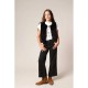 Sleeveless faux fur vest with a discreet closure and a straight cut. This model adds a chic, cocooning touch to all your outfits. Thanks to its soft and warm material, it can be worn indoors as an extra jacket or outdoors over a sweater or t-shirt. Its straight cut and sleeveless design allow for great freedom of movement, ideal for mid-season or for elegant layering. Understated and feminine, the FUZZY sleeveless jacket stands out for its comfort and refined simplicity, becoming a must-have for any winter wardrobe. Features: - Length: Standard - Closure: Buttoned - Fit: Regular - Collar shape: Round neck Specifications: - Composition: 100% polyester Care instructions: - Machine wash according to instructions on care label.