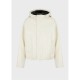 Hooded jacket with a black inner lining.