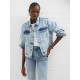 • Metal button closure secures with denim detailing