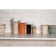 The Dispenser Food by ALPINA is a set of 4 assorted transparent containers with black, grey, and white accents, perfect for storing and dispensing dry food items.