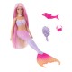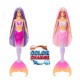 Switch up her look for any adventure with a color transformation! Dip Barbie doll into icy cold water to see her hair, bodice, and tail turn purple.