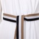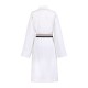 - A distinctive striped belt in neutral tones adds a modern design element while securing the robe perfectly at the waist.