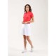Sunblock and Dry-Matic soft, lightweight stretch jersey polo shirt. Perfect for summer, it is quick-drying and boasts an effective anti-UV treatment to protect you from the sun´s harmful rays. This decidedly-feminine piece features rhinestone-detailed buttons and golden appliqué on the collar points that matches the logo on the chest. You can even pair it with more formal ensembles.