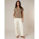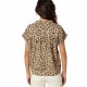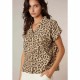 Fluid leopard-print blouse with a tailored collar, rolled-up sleeves, and button fastening. The CELIANE short-sleeve blouse features a leopard print that adds a bold yet elegant touch, while the tailored collar and fluid cut structure the silhouette with modernity. Slightly rolled-up sleeves and a button fastening complete this statement piece, perfect for elevating both casual and dressier outfits.