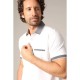 Eagle polo shirt with contrasting collar, button placket, and detailed finishes. This model revisits the classic polo shirt with understated refinement a textured collar in fine knit highlighted by a light border, a fake chest pocket edged in the same contrasting knit, and short sleeves decorated with two-tone ribbing for a graphic look. Discreet slits punctuate the sides of the piece, providing comfort and structure. Features: - Cut: Regular - Sleeve type: Short sleeves - Collar shape: Polo collar Specifications: - Material: 94% Cotton, 6% Elastane Care: - Machine wash according to the instructions on the care label.