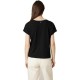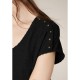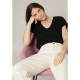 Textured short-sleeve T-shirt with V-neckline and studded details. The KAMILI T-shirt features a textured fabric and a flattering V-neckline that creates a clean, feminine silhouette. Designed with short sleeves, it is enhanced by subtle decorative studs on the shoulders, adding a refined detail to the minimalist design. Finished with a discreet signature badge on the upper back, this T-shirt is easy to style with trousers or jeans for an effortless everyday look.