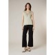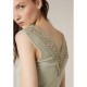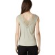 Women´s sleeveless top with a deep V-neck and geometric lace details. YALINA Women´s sleeveless top with a delicate and feminine style. It features a deep V-neckline at the front and back, highlighted by a wide band of openwork lace with a geometric pattern. Slightly fitted, this elegant design adds a romantic touch to summer outfits.