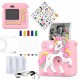 Denver KPC-1363 pink kids camera with printer. Kids print camera with funny silicone cover and accessories. Features:Thermal print function that prints on paper or sticker in grey/dot. 3 print paper rolls included. Selfie lens for taking selfies. Records AVI videos in 1080p (interpolated), 720p, VGA resolution. JPG photos up to 20 megapixels (interpolated). Plays MP3 music files (needs microSD-card, not included). 2´´ built-in LCD screen. Built-in games (Snake, Push Box, Tetris, Ball). Built-in photo frames and funny filters. Built-in 1200 mAh rechargeable battery (charges by USB-C). Needs microSD-card up to 128 GB (FAT32) for video recording (not included). Accessories:1x funny silicone cover, 1x USB-A to USB-C cable, 1x sticker sheet, 5x color markers, 3x print paper rolls, 1x anti-choke strap. WARNING!. Not suitable for children under 3 years. Swallowable small parts. Choking hazard. -Video Recording:Yes. -Max. Video Resolution (Pixel):1920 x 1080. -Type:LCD. -Touch Screen:No. -Screen Diagonal (cm):5,08. -Display Diagonal (inch):2.0. -Energy Supply:Integrated Rechargeable Battery. -Type of Battery / Rechargeable Battery:Li-Ion Rechargeable Battery. -SD:microSD / microSDHC / microSDXC. -Amount of Memory Card Slots:1. -Camera for Children:Yes. -Underwater Camera:No. -USB:USB-C. -WiFi:No. -Colour:Pink. -Width (mm):94. -Height (mm):99. -Depth (mm):52. -Weight (g):600.