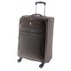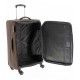 Medium trolley. Made of durable polyester textile material with a two-tone material combination. Four double wheels. Lined interior with elastic straps for securing and interior pocket. Top and side handle. Expandable, for greater capacity. Aluminum mechanism. Exterior pockets. Identification card holder on the back. Measurements: 41x68x27/31.