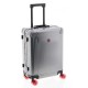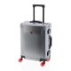 Ultra-resistant cabin suitcase made of Aluminum material. Aluminum hermetic seal. Two TSA combination locks. Top and side handle. Internal separator tray and elastic straps on one side. Internal pockets. Push-button mechanism. Protective corner guards. Ultra-smooth and silent Skate wheels. Measurements: 40x55x23