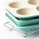 Designed to inspire your inner baker, this 4 piece baking set from GreenLife is perfect for any home baker. Thanks to the premium ceramic nonstick coating, which is free of PFAS you can cook healthier. Constructed with heavy-duty steel for fast and even heat distribution and extra crispy baking results this set is oven safe to 450°F. Including a 6-cup muffin pan, rectangular cake pan, baking tray and cooling rack this set is all you need.