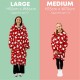 This officially licensed Hello Kitty Hugzee is super comfortable and makes for a great gift to wrap up warm when the weather gets cold. Featuring a repeating pattern of the world famous Hello Kitty with white love hearts, set on the iconic Hello Kitty red background. Oversized for extra comfort, the Hugzee combines the wearability of a hoody with the warmth of a blanket, and is Sherpa lined to keep you extra warm during the winter months, or when the temperature drops in the summer. The Hugzee has a ‘hoody’ style kangaroo pocket, with tighter cuffs to keep out the cold, and a Sherpa lined hood. Great for lazing around the house playing games, snuggling up on the sofa watching films on movie night, wrapping up warm while doing homework, or taking out while travelling, enjoying the outside, and on long car journeys. The large sized Hugzee is designed for ages 13 and up, and measures 110cm in height to 95cm in width. It’s made from polyester with a fleece lining, and is washing machine safe at 30°c, and suitable to tumble dry at a low heat.