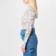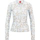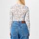 Its round neckline and long sleeves exude elegance, while the sheer design adorned with a mesmerising all-over chain link and logo charm print promises to elevate any ensemble to new heights of glamour. Effortlessly making a bold statement with its playful yet refined aesthetic, whether sipping champagne at a rooftop gathering or dancing under the moonlight at a gala event, this exquisite piece will command attention and exude confidence.