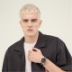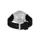 44mm stainless steel case, black dial, black silicone strap. Water resistant to 5 ATM.