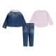 Levi´s® Sherpa Jacket 3-Piece Set. Jacket, Jeans: 54% Cotton, 27% Polyester 17% EcoVero viscose, 2% Elastane. Tee: 60% Cotton, 40% Polyester. This 3-Piece set is perfect for mixing & matching and includes: • Denim sherpa jacket. • Snap front closure. • Sherpa collar. • Made from quality French terry. • Long sleeve tee. • Round collar. • Graphic print at chest. • Made from breathable and durable jersey. • Pull-on jeans. • Slim fit. • Levi´s® back pockets design. • Made from stretchy baby denim. Machine wash. Wash with like colors.