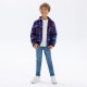 The boys padded shirt jacket is designed as outerwear for boys, intended for use in cooler seasons. It features a blue chequered pattern combined with a soft, breathable fabric that ensures comfort throughout wear. The jacket includes a quilted padded inner lining to provide additional warmth in cool weather conditions. Its relaxed fit makes it suitable for easy layering over other clothes, enhancing practicality for various outdoor activities or casual occasions. Construction highlights include a button front closure and buttoned cuffs, which assist in retaining heat. Additionally, two chest pockets with button closures offer practical storage for small essentials. This garment combines functional design elements with a traditional pattern to deliver both comfort and utility for boys during autumn and winter periods.