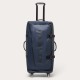 Three strategically placed handles and glide-friendly wheels make the Endless Adventure Travel Trolley ideal for weekend or extended getaways. It features recycled Polyester, a secure buckled opening, and a top pocket with zip for quick and easy storage options. Interior zippered mesh pockets offer organized packing of your items, and it’s finished with a branded lining and tonal Oakley logo on the front. Features: - Water repellent - Tonal bark logo on front - Three handles - Opening with buckles - One top pocket with zip - Internal zippered mesh pockets - Branded lining - Four wheels Recycled: - Recycled fabric is derived from post-consumer plastic bottles, which help to reduce C02 emissions in the air and keep plastic out of landfills. The result is a recycled polyester that is breathable, lightweight, and durable. Specifications: - Material: 100% Recycled Polyester - Volume: 97L - Dimensions: 37cm Lx31cm Wx75cm H