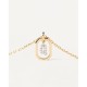 Small initial letter necklace in zirconia inside gold-plated silver octagonal pendant
