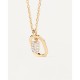 Small initial letter necklace in zirconia inside gold-plated silver octagonal pendant