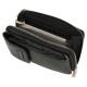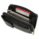 Mobile phone holder shoulder bag measuring 11 cm x 20 cm x 4 cm made of synthetic leather. Main compartment with two compartments, a coin purse with zipper closure and three card slots. Front pocket with click closure to store your cell phone. Adjustable shoulder strap. Special protection system for RFID cards that blocks signals from unauthorized radio frequency scanning devices.