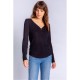 Open V-neck Henley top in 2x2 peachy rib with banded cuff and fitted shape through body.