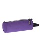 Cylindrical pencil case with one single compartment with zipper closure. Side handle and inner lining.