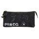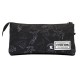Rectangular pencil case with three compartments with liquid repellent body made of recycled material. The two outer pockets open with the main zipper and the third one with its own one.