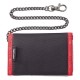 Make a statement with the Diamond Chain Wallet. This wallet features an ID window, multiple card slots, a single note compartment, a zip coin pocket, and a secure chain, combining style with security. Features: - ID window - Multiple card slots - Single note - Zip coin - Placement print - Secure chain Specifications: - Composition: 100% Polyester - Measurements: H:80mm W:110mm D:20mm