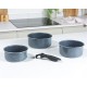 Elevate your culinary experience with the Russell Hobbs Smart Clip Nightfall Stone Saucepan Set. Featuring 16, 18, and 20 cm pans with a convenient detachable handle, this set boasts a tough, easy-clean, non-stick coating. Its innovative stackable design saves up to 43% of storage space. Suitable for all hobs, including induction, these pots are also oven-safe up to 200°C – perfect for seamless hob-to-oven cooking so you can perfect your one-pot meals and serve them straight at the table.