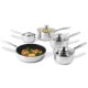 This Russell Hobbs classic pan set is the ideal way to revolutionise your cookware. Made from high quality stainless steel, they come in a set of five. The set consists of a 14 cm milk pan, 16, 18 and 20 cm saucepans with tempered glass lids and a 24 cm non-stick frying pan. The lightweight pans are easy to manoeuvre around the kitchen and are suitable for dishwasher cleaning. They come with a 5 year guarantee and keep a long-lasting shine, this set is sure to look great in your kitchen.