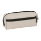 Three compartment with zipper. With elastic back rubber to attach it to the notebook or folder.
